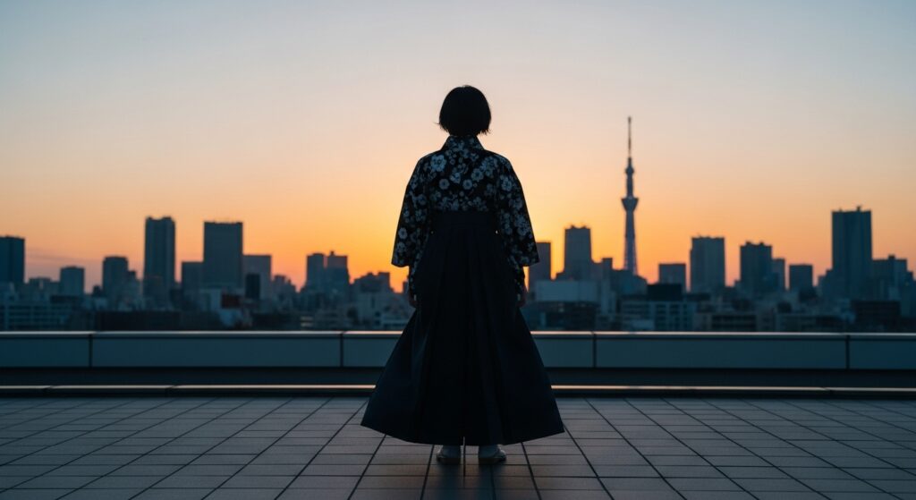 袴 × ジェンダーレスモード:都会の風をはらむエレガンス
