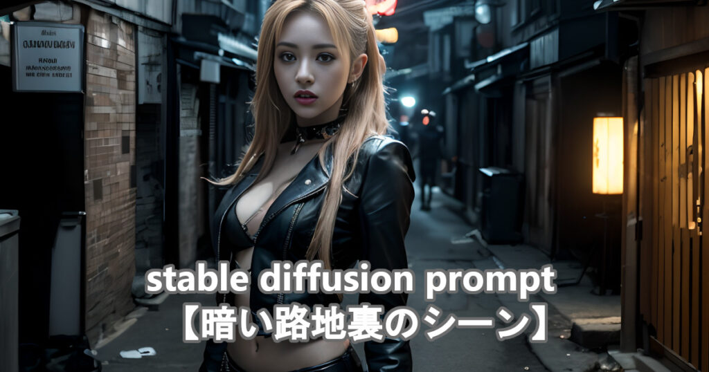 Edgy Rocker (エッジィロッカー) 暗い路地裏の薄明かりの下、レザージャケットとエッジィなアクセサリーが輝きます。 Leather jackets and edgy accessories shine under dim streetlights in the dark alley., Streetwear (ストリートウェア) 明るいスト... -